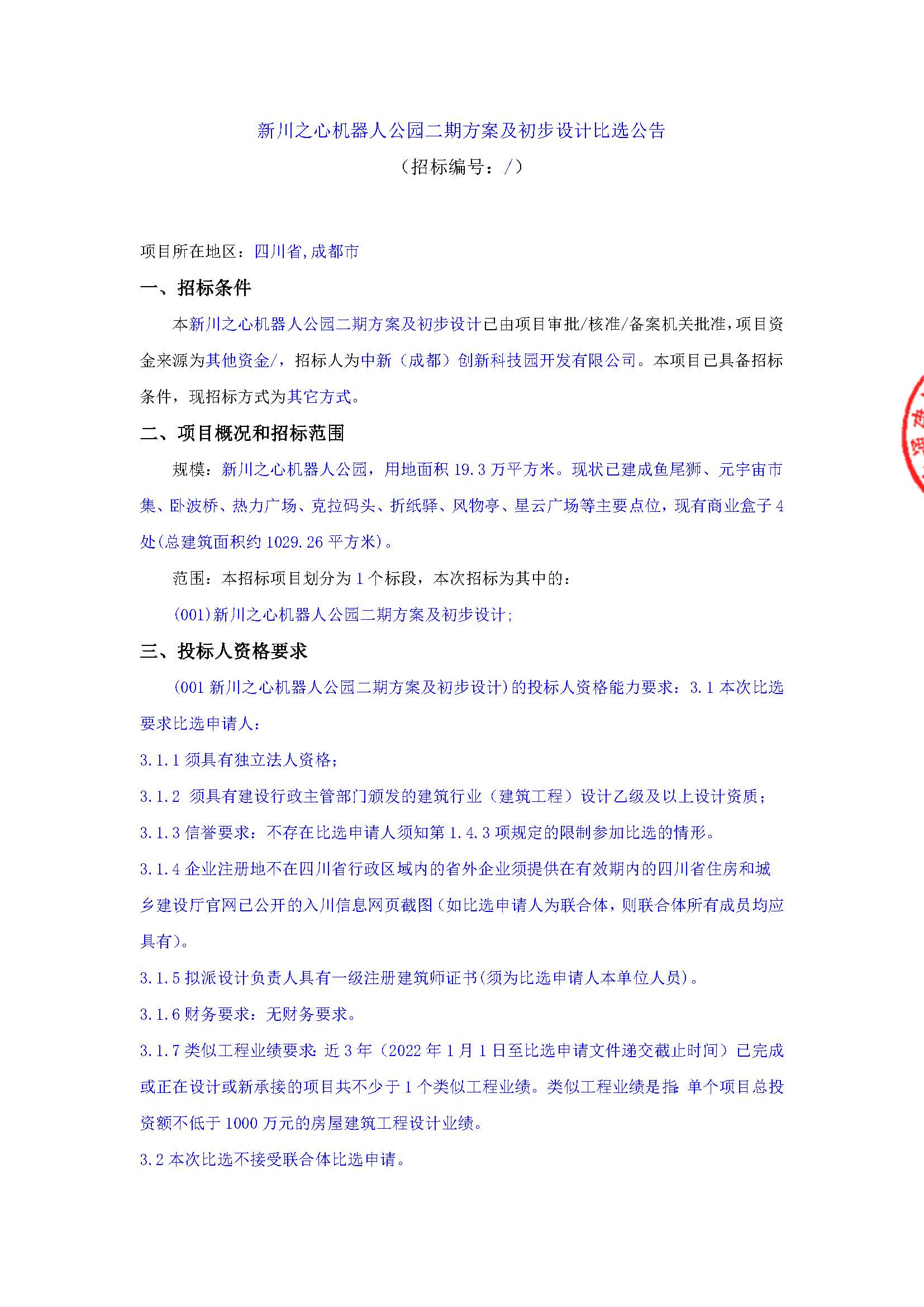 新川之心机器人公园二期方案及初步设计比选公告