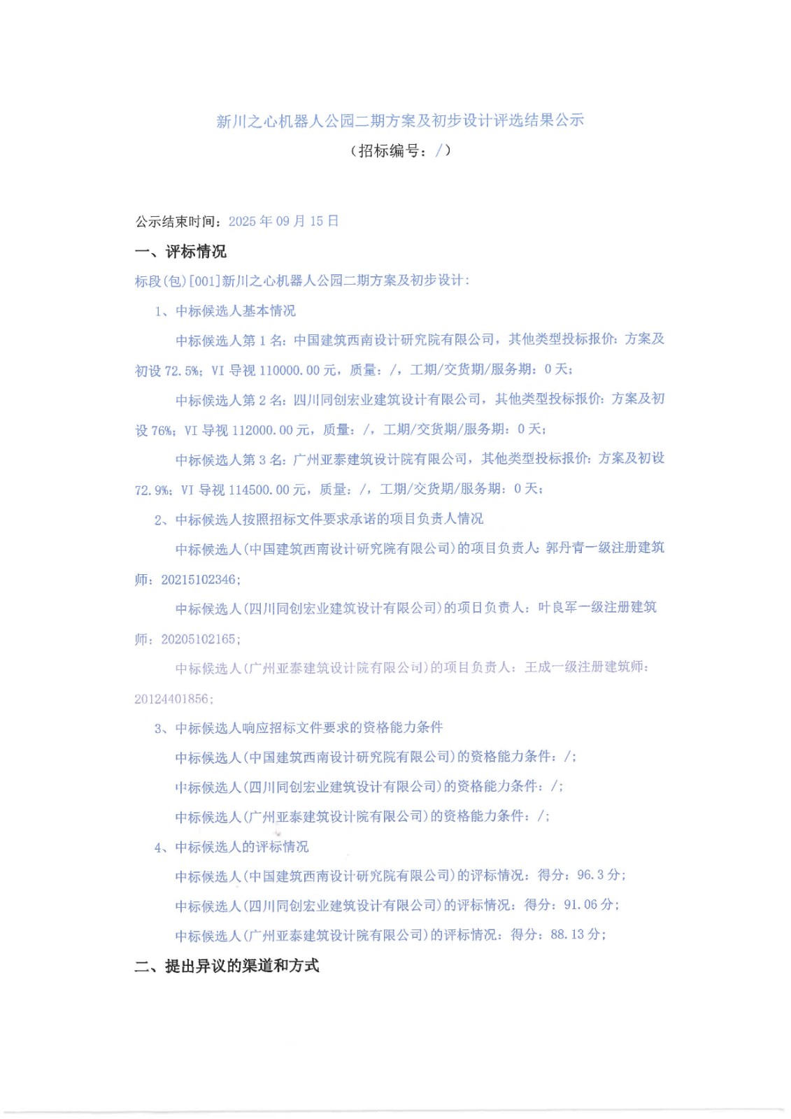 新川之心机器人公园二期方案及初步设计评选结果公示