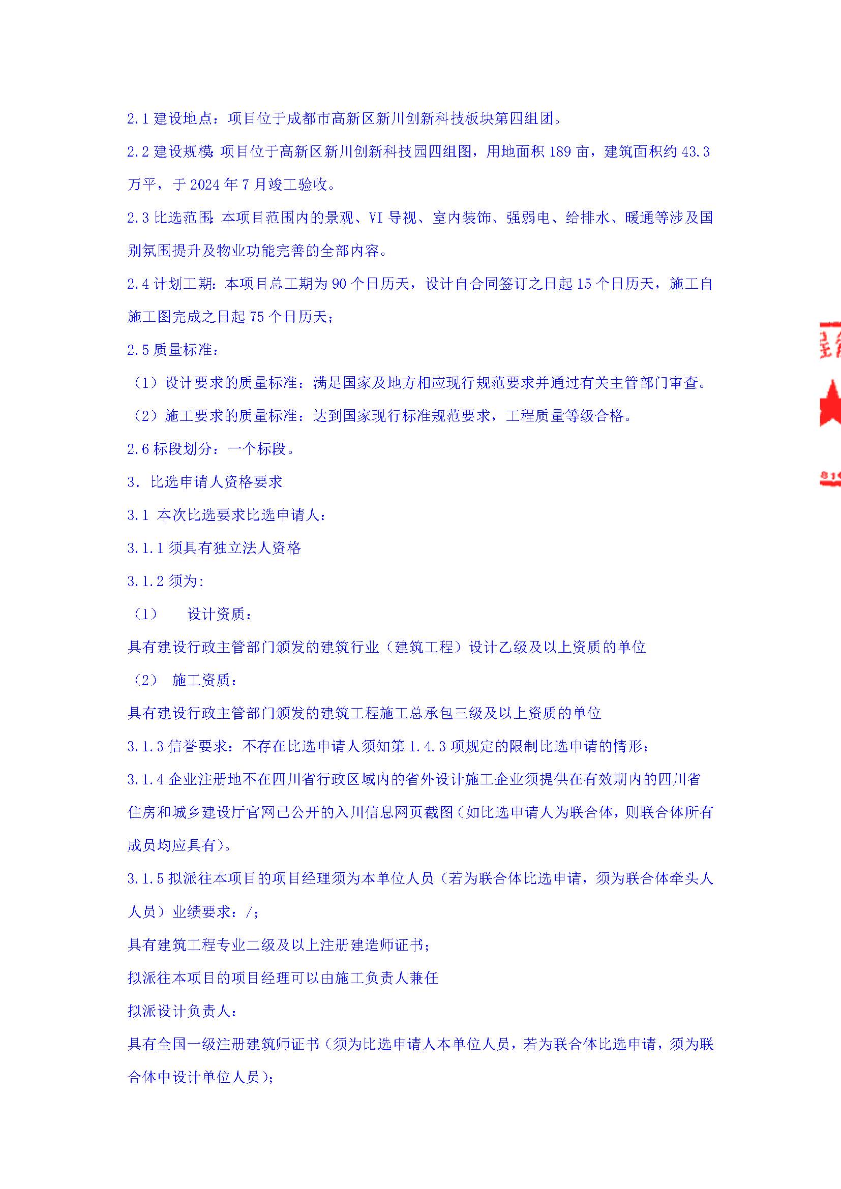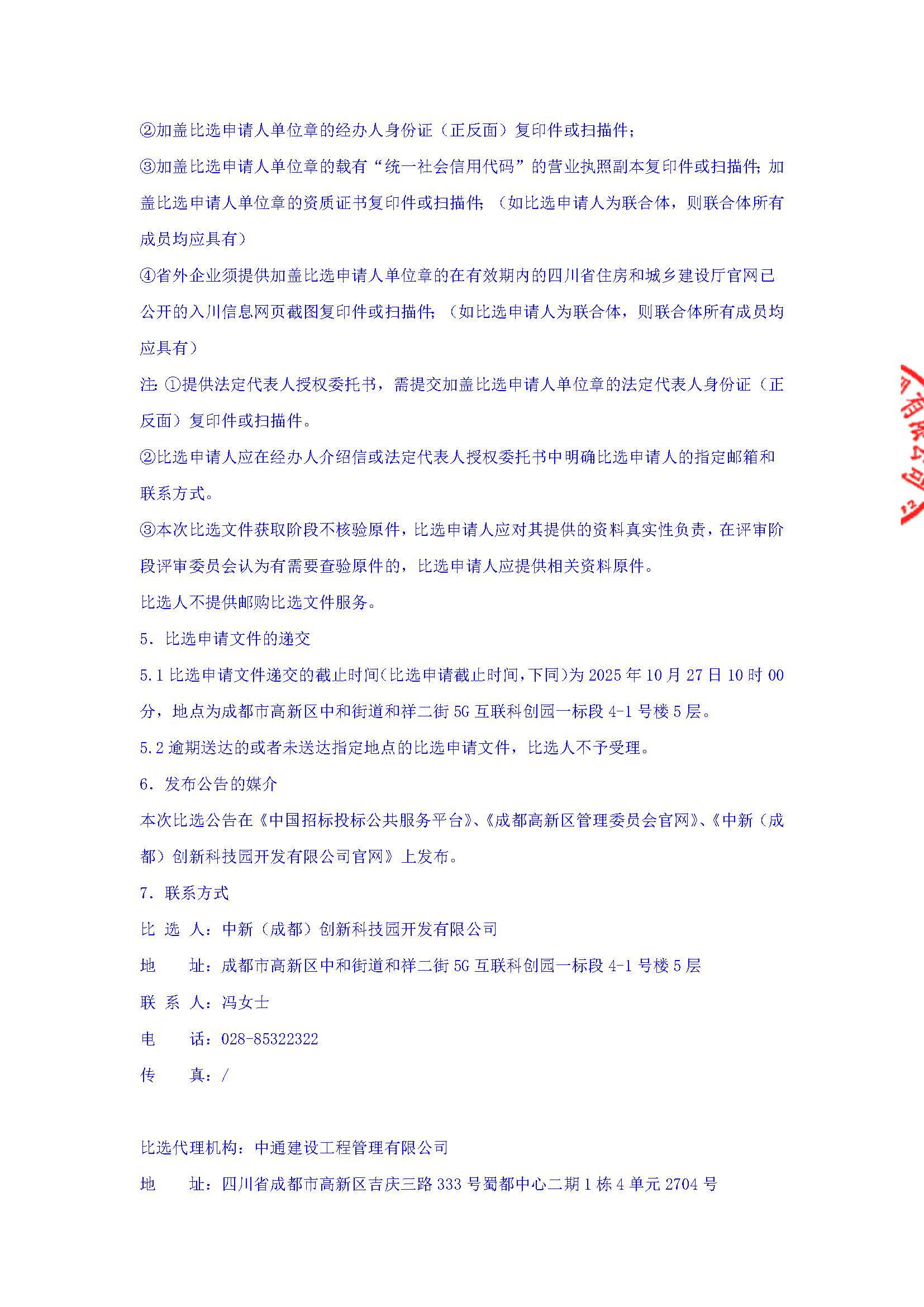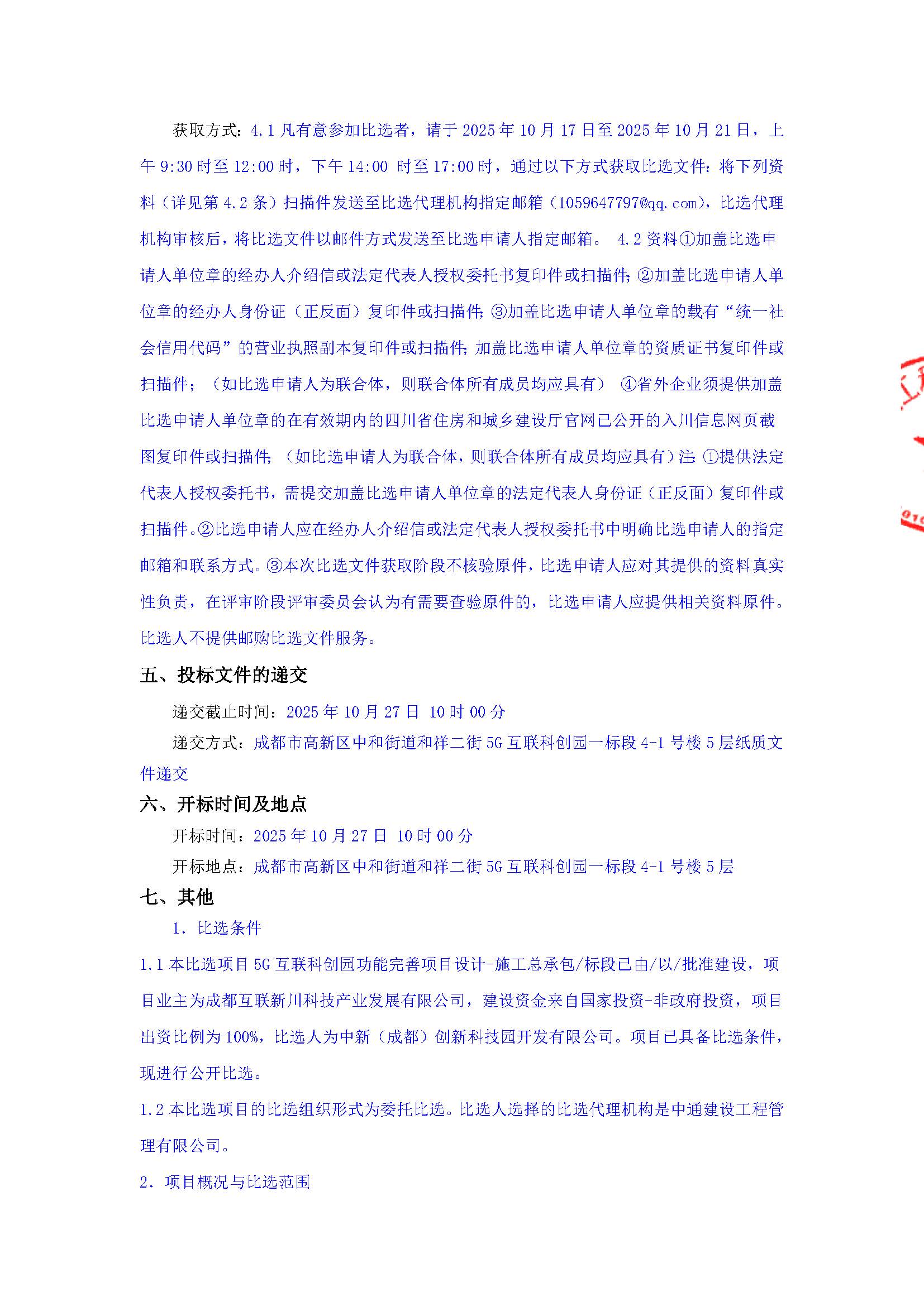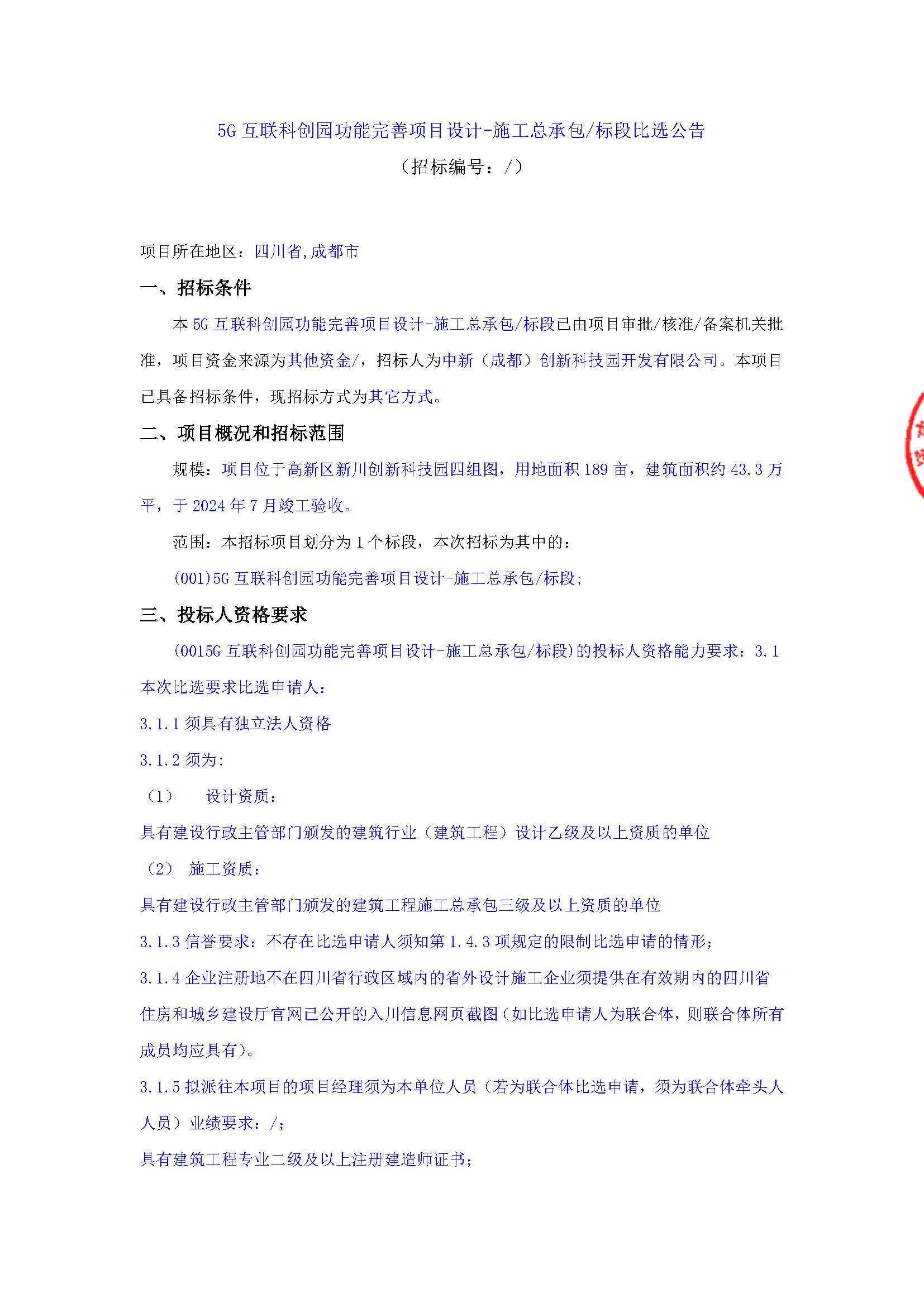 5G互联科创园功能完善项目设计-施工总承包标段比选公告
