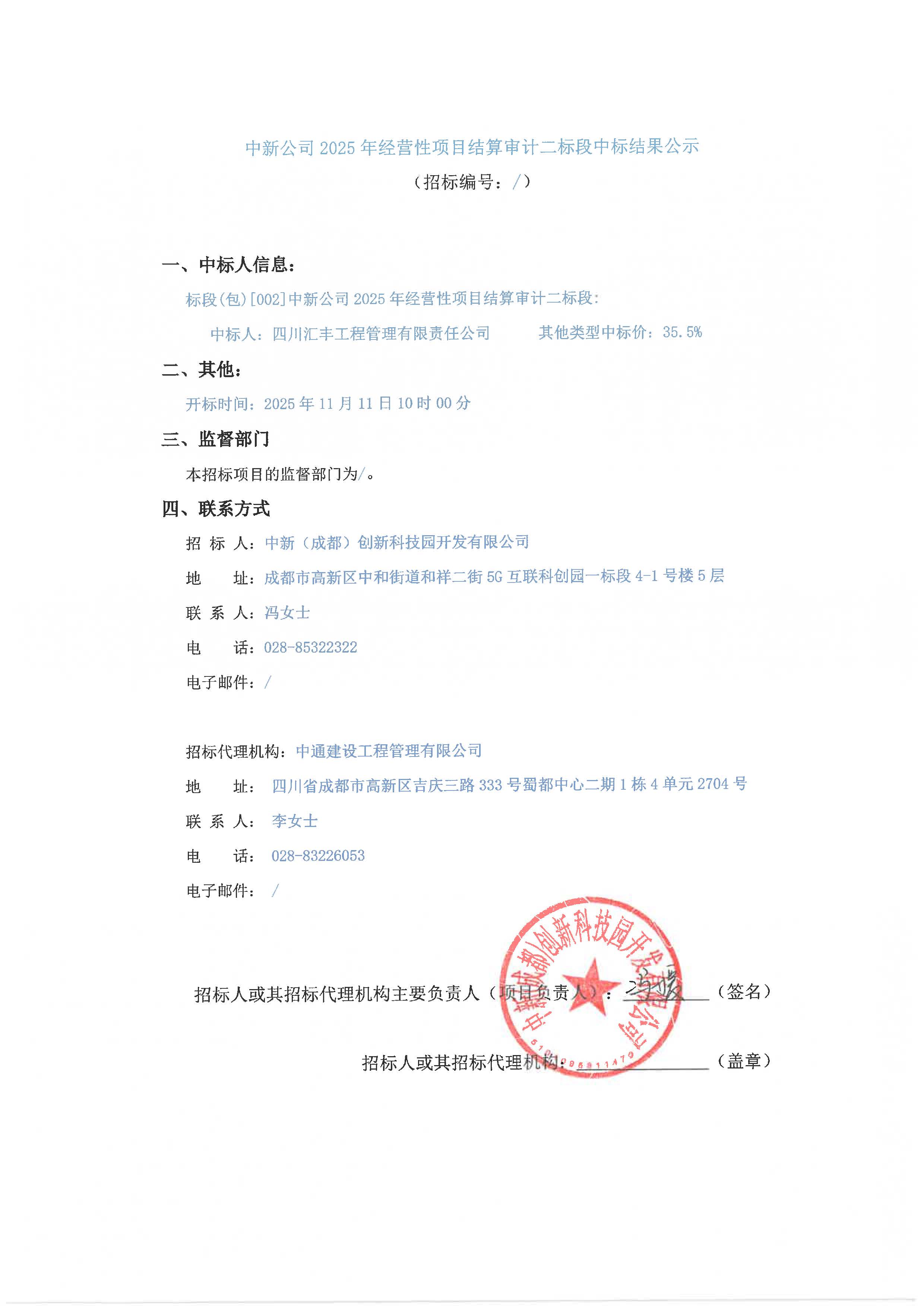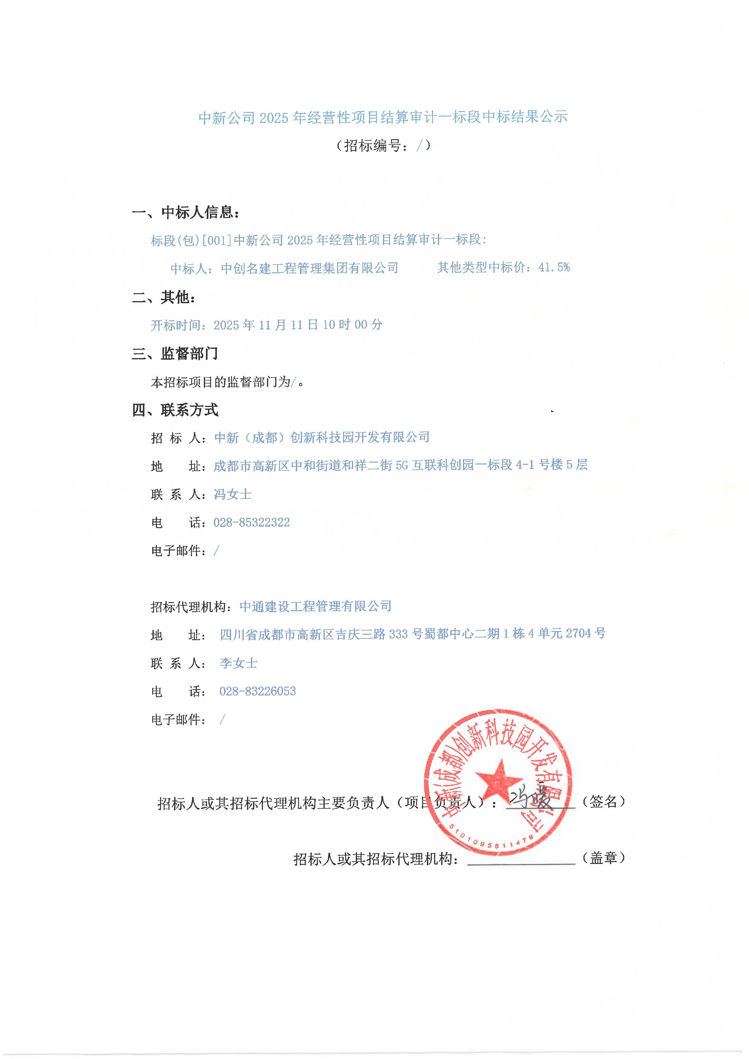 中新公司2025年经营性项目结算审计中标结果公示